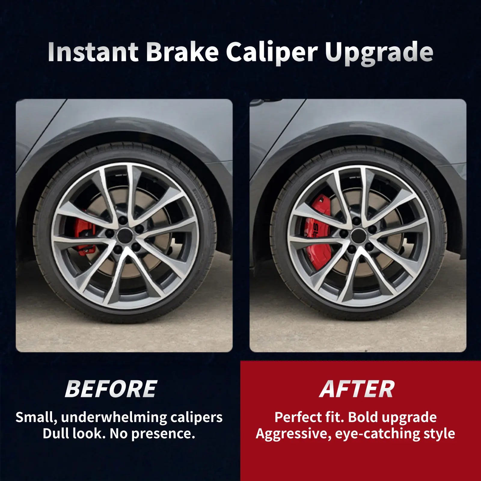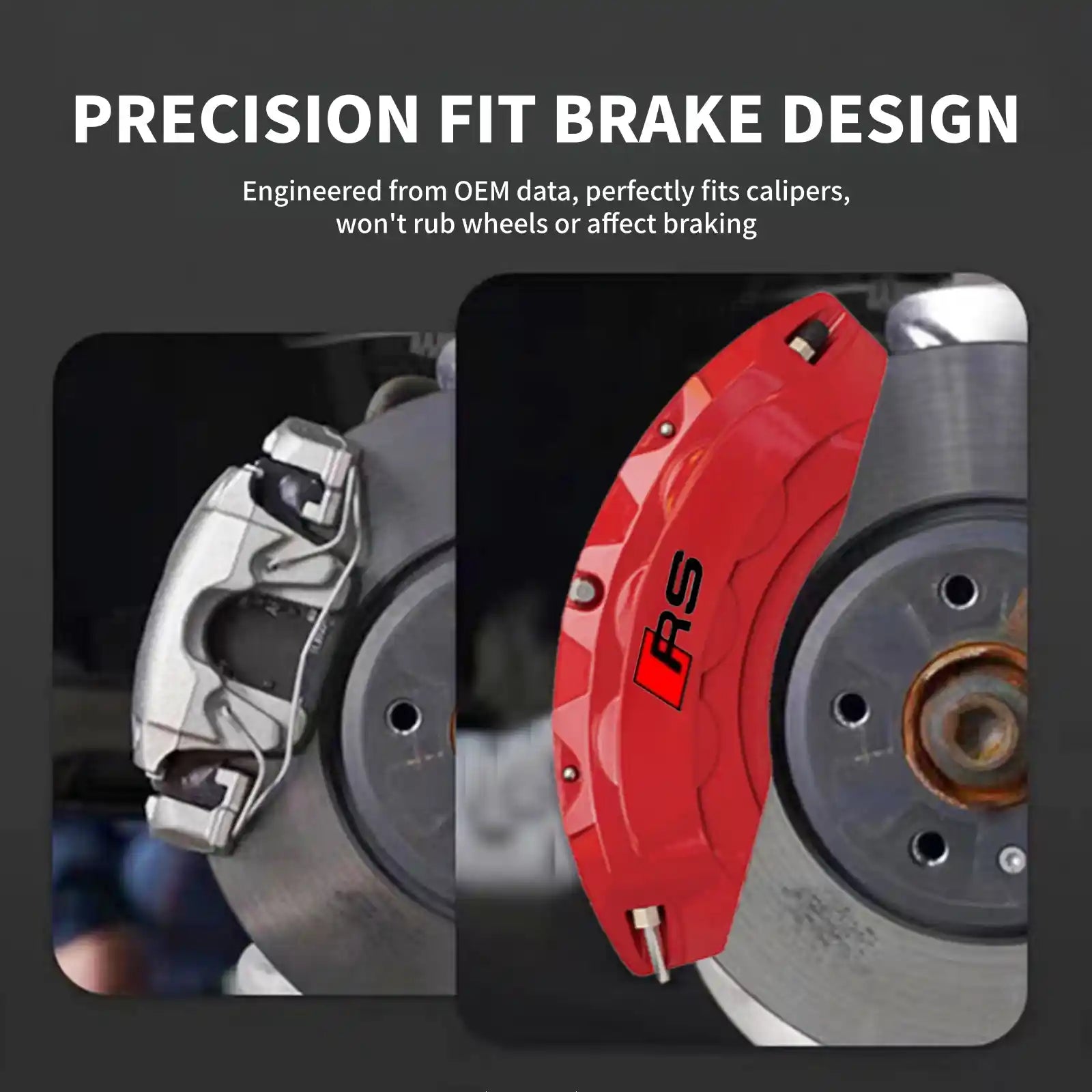 Transform your Audi instantly with premium Audi caliper covers designed to deliver a bold, RS-inspired performance look. These custom-fit brake caliper covers are precision-engineered for a seamless fit, enhancing both style and presence without the cost of a full brake upgrade.