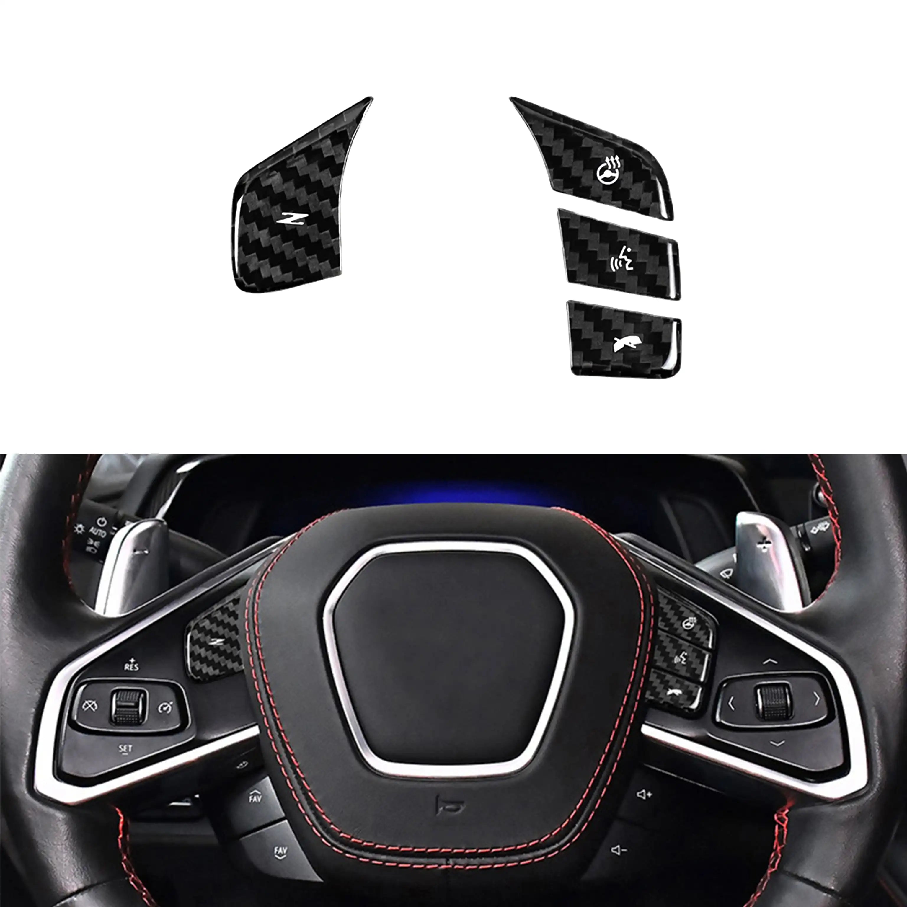 For Heated Steering Wheels: 4 × Carbon Fiber Button Covers