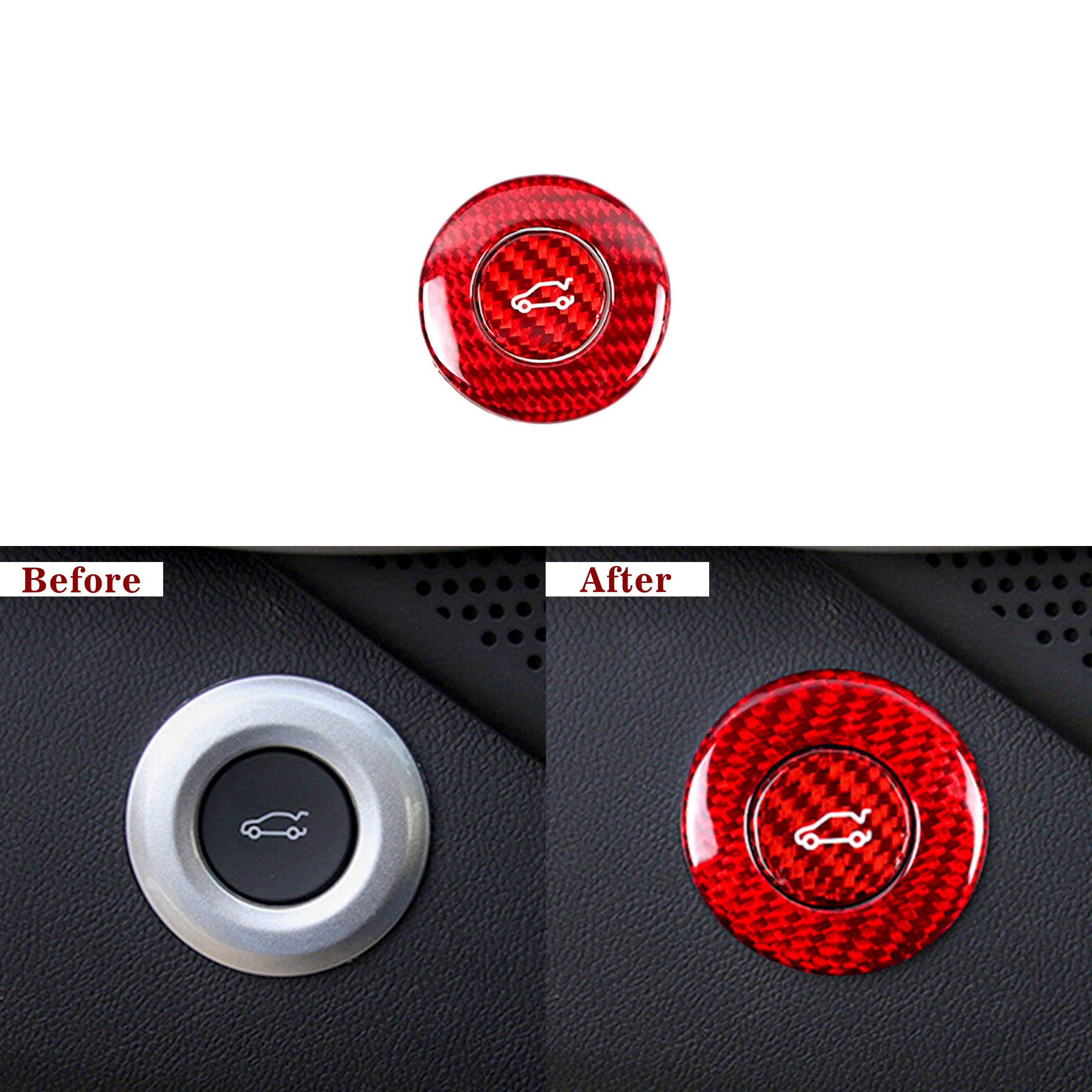Package Includes: 2× Trunk Release Button and Trim Carbon Fiber Covers