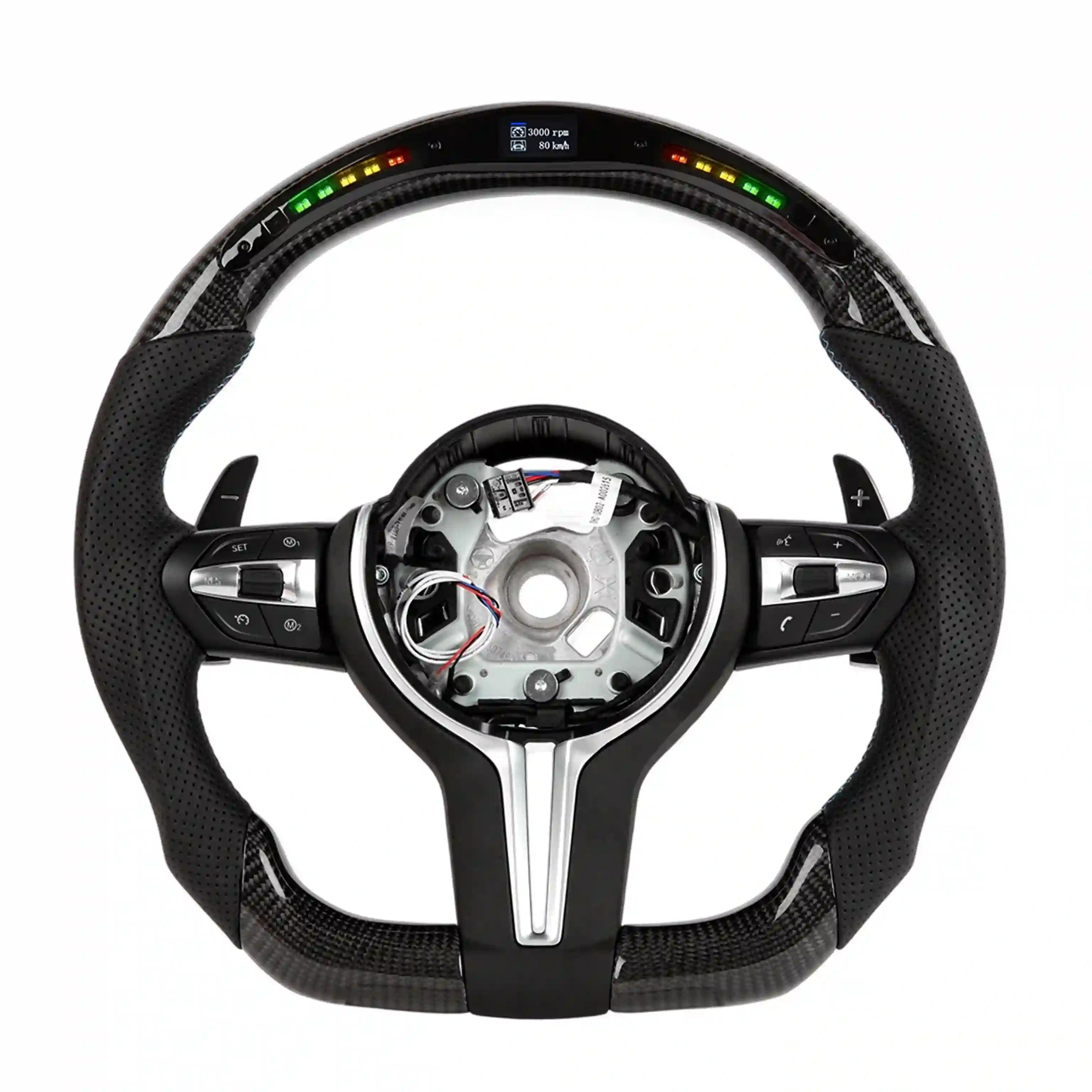 Whether you're refining your cabin's visual appeal or aiming for a more responsive and dynamic driving experience, this steering wheel offers the perfect balance of style, function, and performance. With customization options such as M-colored stitching, carbon fiber finishes, and an optional LED display, it's more than just a steering wheel—it’s a transformation of your BMW’s driving environment.